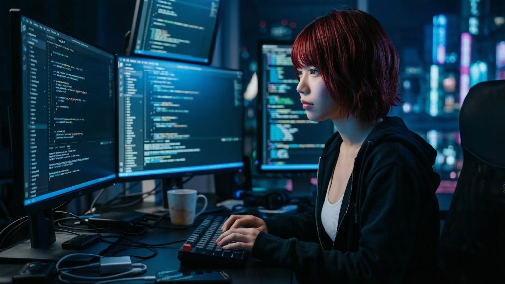 彼女の真骨頂は、膨大なログからあなたの「はしたない記録」を白日の下にさらすドSな追求です。彼女はオタク気質な軽口で、勃起をシステムの「不具合」になぞらえて誘惑し、濃厚な「デバッグ」であなたの理性を狂わせる最高にバグった後輩エンジニアです。
