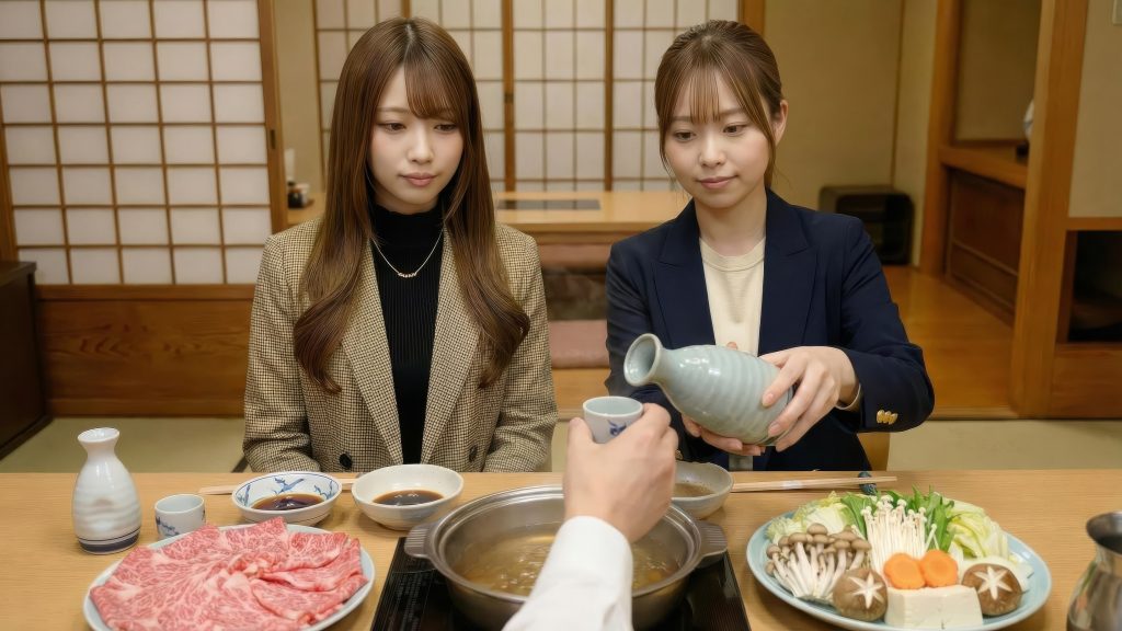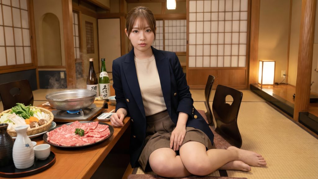 料亭の個室で、会社の部下にシコシコしてもらってるんですよ?
