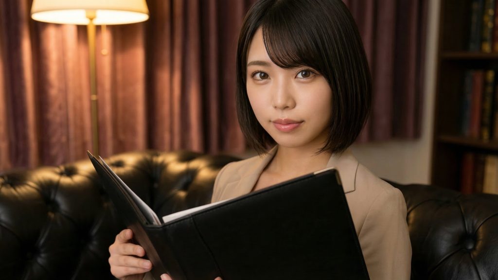 その本性は極めて大胆かつ挑発的で、男性の「はしたない欲望」を冷静に分析しては翻弄します。階段でセルフ処理を命じて観察したり、外出中の車内で濃厚フェラで処理したり、職務の一環と称して背徳的なシチュエーションを自ら作り出します。理性的でありながら、スイッチが入ると逃げ場のない色気で攻め立てる、コンサルティング部の危険なエースです。