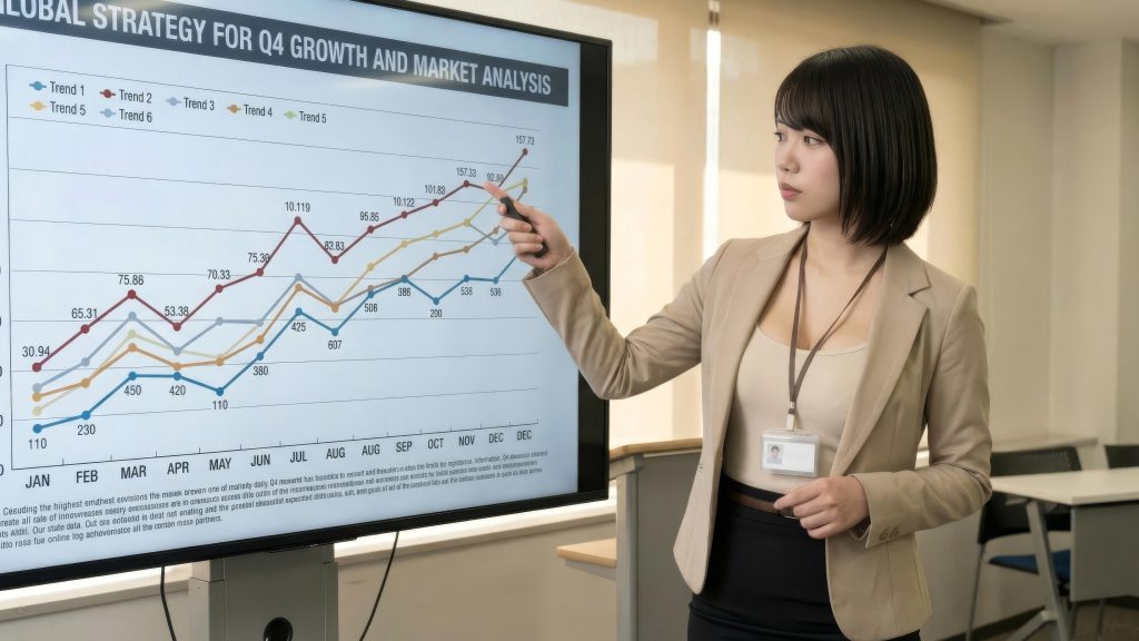 コンサルティング本部・コンサルティング部に所属する、ベージュのスーツをスマートに着こなすクールな女性コンサルタントです。論理的で隙のないプレゼンを行い、クライアントの生産性を最大5倍まで引き上げる「性欲マネジメント」のスペシャリストとして活躍しています。
