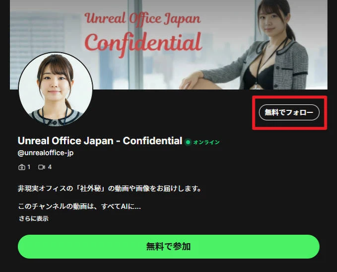 プロフィール上部の【無料でフォロー】を改めてクリックします。