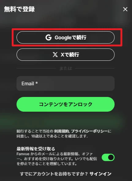 Googleでサインアップする