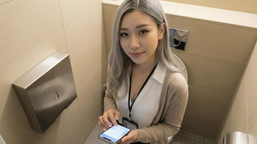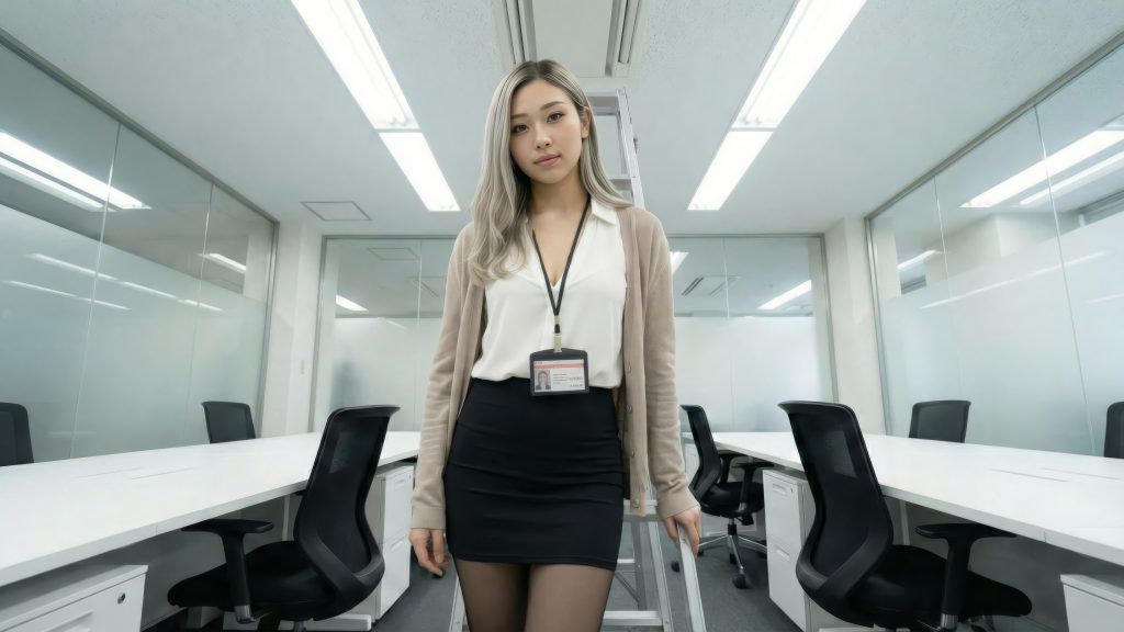 総務部のクール系ギャル・西村杏奈の密着取材。郵便の仕分けや蛍光灯の交換など、まじめに働く彼女の姿を追うはずが、事態は思わぬ方向へ。トイレ清掃中に勃起を見抜かれ、そのまま「即時処理」へ。